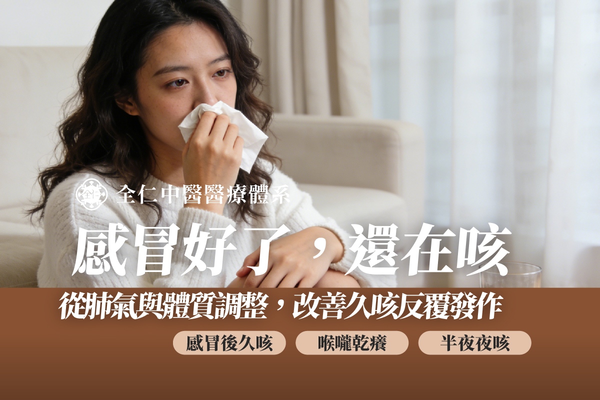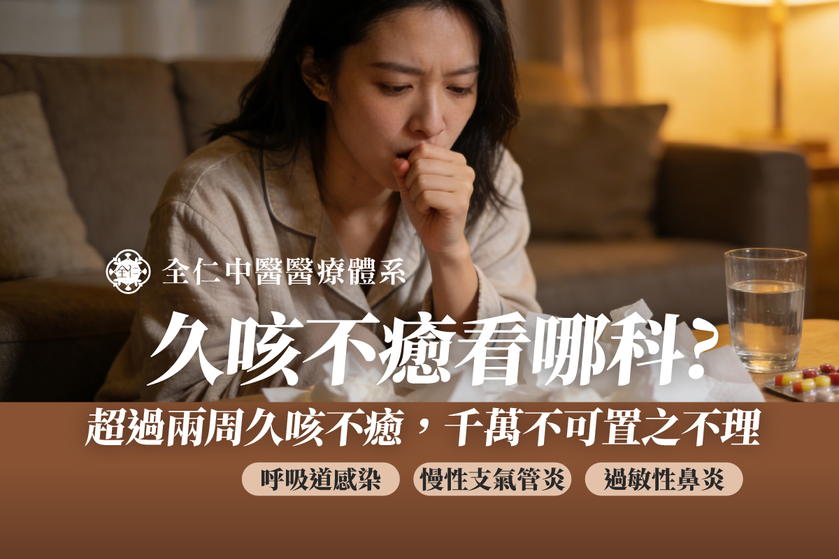 久咳不癒看什麼科?醫師分析最常見的咳嗽原因與保養之道 咳嗽是人體一種自然的防禦機制,主要目的是清除呼吸道中的異物或分泌物。然而,當咳嗽症狀持續超過三週,甚至長達八週以上,演變成「慢性咳嗽」時,往往就不只是單純感冒那麼簡單。許多民眾在確診後或感冒痊癒後,仍然反覆出現咳嗽不止的情形,甚至伴隨濃痰、胸悶或呼吸不順,嚴重影響日常生活品質。此時,大家心中最常出現的疑問便是:「久咳不癒看哪一科?」 實際上,久咳不癒應該看哪一科,需視咳嗽的性質與伴隨症狀而定。一般情況下,初步可先至內科或家醫科進行評估;若症狀明顯集中於下呼吸道,例如懷疑與氣喘、慢性阻塞性肺病或肺部感染相關,則屬於胸腔科(胸腔內科)的專業範疇。 久咳不癒看哪一科?先釐清是感冒還是黴漿菌感染 在臨床上,最常見的咳嗽原因除了感冒病毒之外,近年來黴漿菌感染也相當常見。黴漿菌引起的咳嗽多表現為乾咳,或伴隨黏稠痰液,病程通常較長,容易被誤以為只是一般感冒未癒。 但若你發現自己久咳不癒有痰,且服用一般感冒藥後效果不佳,甚至出現夜間咳嗽加劇、影響睡眠的情況,便需要提高警覺。此時,建議找胸腔科醫師進行進一步評估,透過臨床判斷與必要檢查,釐清是否與過敏性氣喘、鼻涕倒流或感染因素有關。 確診後久咳不癒有痰看什麼科?胸腔內科 X 光檢查的重要性 對於確診後久咳不癒的新冠肺炎患者而言,肺部修復往往需要一段時間。若出現氣管或支氣管持續敏感、呼吸時有異音,或胸口悶脹感反覆發作,建議至醫院接受 X 光檢查。 透過影像檢查,可初步排除肺炎、肺結核或其他結構性問題。若檢查結果顯示肺部結構無明顯異常,但咳嗽仍反覆出現、有時加重、有時緩解,則可能需要從體質調節與免疫反應的角度進一步思考。 久咳不癒看中醫有效嗎?全仁中醫「先除邪氣後補正氣」的調理思維 當西醫檢查結果正常,卻仍長期咳嗽不止時,許多人會開始搜尋「久咳不癒看中醫」或「台南看咳嗽厲害的醫生」。全仁中醫體系延續中醫以五臟六腑、氣血津液(正氣)及風寒暑濕燥火(邪氣)為治病核心的傳統理論,針對久咳不癒採取「先清除五臟六腑的邪氣,再溫補五臟六腑正氣」的調理策略。 例如,若長期喉嚨卡痰、反覆咳嗽,可能與濕熱或痰濁等邪氣影響肺氣宣發有關。全仁中醫醫師會先透過科學中藥或針灸方式協助清除干擾因素,待邪氣去除後,再進一步溫補肺、脾、腎的氣血,使支氣管防禦機能逐步恢復正常運作。 久咳醫生推薦台北與台南:PTT、DCARD 熱議的咳嗽名醫觀點 在久咳不癒 PTT 或 DCARD 討論區中,網友經常分享咳嗽名醫與咳嗽醫生推薦名單。然而,所謂的「名醫」,關鍵並不在於名氣,而在於是否能精準辨證、對症調理。全仁中醫體系的醫師在治療咳嗽時,並非僅關注肺部本身,也會同步評估脾與腎的功能狀態。 中醫理論指出:「脾為生痰之源,肺為貯痰之器」,若脾胃運化失衡,痰濕容易反覆生成,使咳嗽遷延難癒。透過整體調理脾胃功能,有助於從根源減少痰液產生,這也是許多久咳醫生推薦台北或台南患者選擇全仁中醫的重要原因。 久咳不癒新冠肺炎後遺症:醫師建議的生活調養方向 除了醫療調理,日常生活保養同樣有助於減輕咳嗽困擾。全仁中醫提醒,久咳期間應避免生冷、甜膩及油炸食物,這類飲食容易助痰生濕並刺激氣管。可適量選擇白色食材,如山藥、百合、白木耳等,協助潤肺調養。此外,注意頸部與胸口保暖、避免冷風直吹,也有助於降低咳嗽發作頻率。 久咳不癒吃什麼?避免偏方,尋求專業評估才是關鍵 至於「久咳不癒吃什麼」的問題,市面上雖流傳許多止咳偏方,但由於體質差異,未必適合每一個人。若寒咳誤用偏熱食療,或熱咳反而進補,皆可能使症狀加重。 當面臨確診後久咳不癒或不明原因的長期咳嗽時,仍應優先尋求專業醫療評估,透過正確判斷病因,才能有效改善症狀,重拾順暢呼吸。